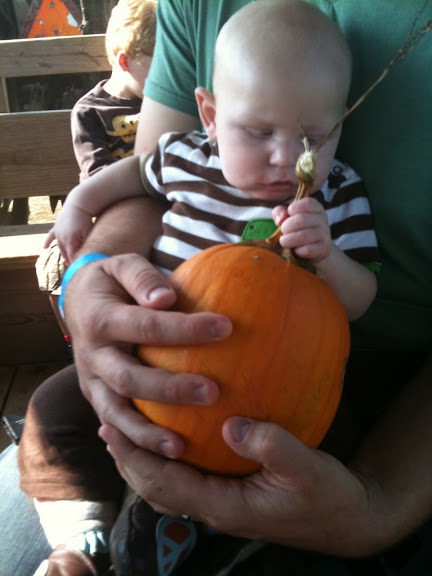 The boys really enjoyed the activity of picking their perfect pumpkins.Finn found one right away – and true to the “you must be able to carry your own pumpkin” rule, he toted his back to the wagon rather quickly.Cole took his time, but did find a lovely one for himself.And both boys even agreed on a cute little pumpkin for Wes.